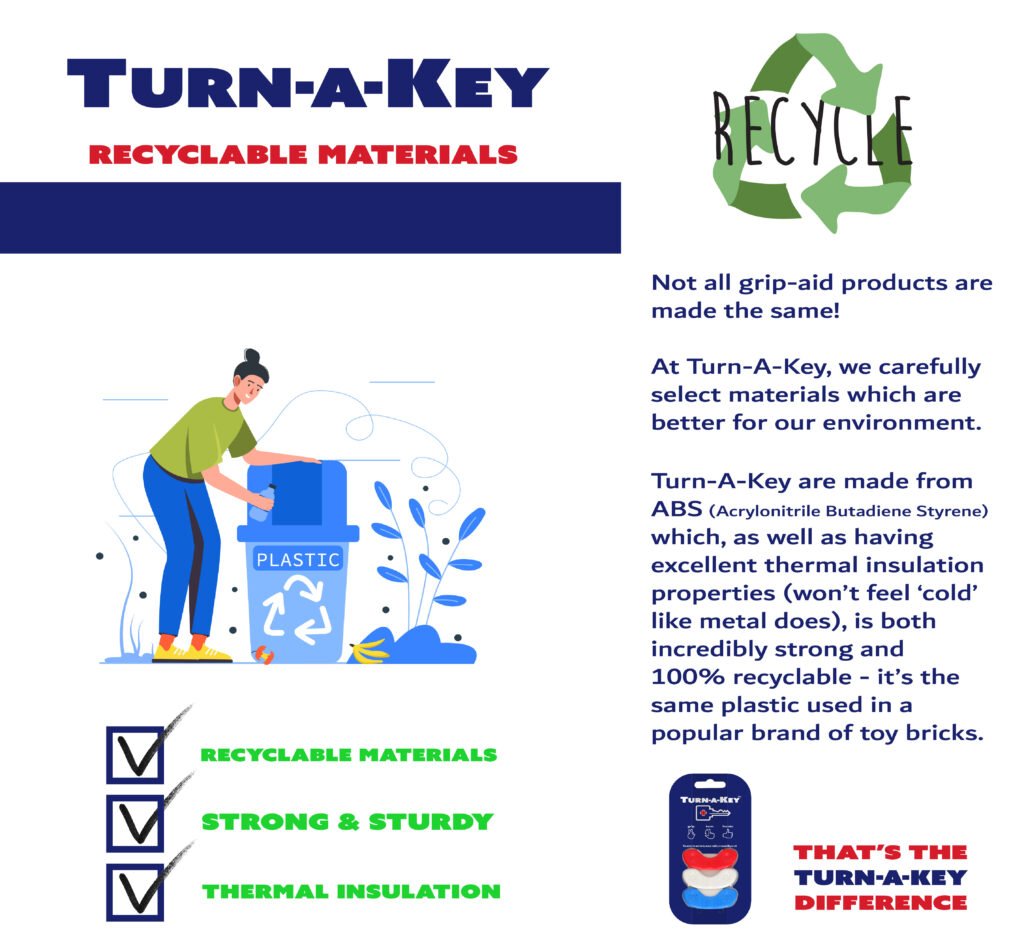 The Turn-A-Key key turner is a practical accessory designed to enhance the experience of using traditional house keys. This innovative device is made from sturdy ABS recyclable plastic, ensuring not only durability but also a commitment to environmental sustainability. The turner easily attaches to standard house keys, optimizing the functionality of the user’s keyring with its user-friendly design.